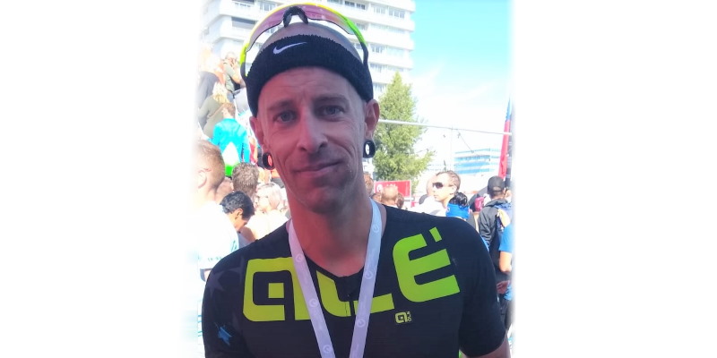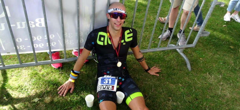 Man sieht es dem Wildenburger Michael Hartmann nicht an: Er hat gerade seinen 1. Wettkampf über die Triathlon-Mitteldistanz in 05:05:16 Std. beendet.